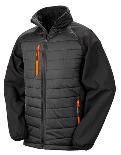 Materiał zewnętrzny: 100% poliester. Wypełnienie: 160 g / m² poliester. Podszewka: 100% poliester | Rękaw 280g /m². 2-warstwowy softshell z przędzy mechanicznej, w skład, ktrego wchodzą: warstwa zewnętrzna: 100% poliester, warstwa wewnętrzna: 100% poliester mikropolar | Kontrastujące zamki przy kieszeniach | Patka osłaniająca podbródek przy zamku | Wyściełana stójka | Korpus wyściełany: Chevron | Elastyczny mankiet | Czarne uchwyty zamków | Uchwyt do wieszania | Połączenie pikowanej części korpusu z softshellowymi rękawami | Super miękki, lekki i ciepły | Softshellowe rękawy nadają się do nadruku | Bez logo | Cicha w noszeniu