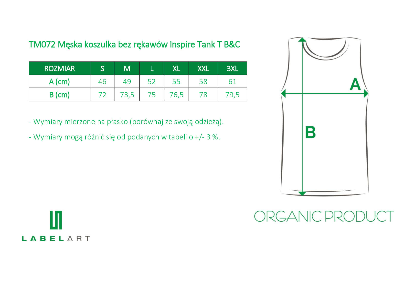 Męski podkoszulek z bawełny organicznej Inspire Tank T europejskiej marki B&C®