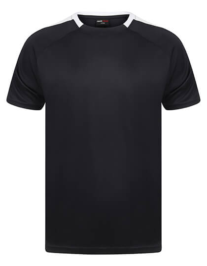 Single jersey | Unisex | Kontrastowe panele na rękawach | Sportowy fason | Szybkoschnąca. Oddychająca | Szybkoschnący, oddychający | Dwuwarstwowy dekolt z tego samego materiału | Raglanowe rękawy | Odrywana metka